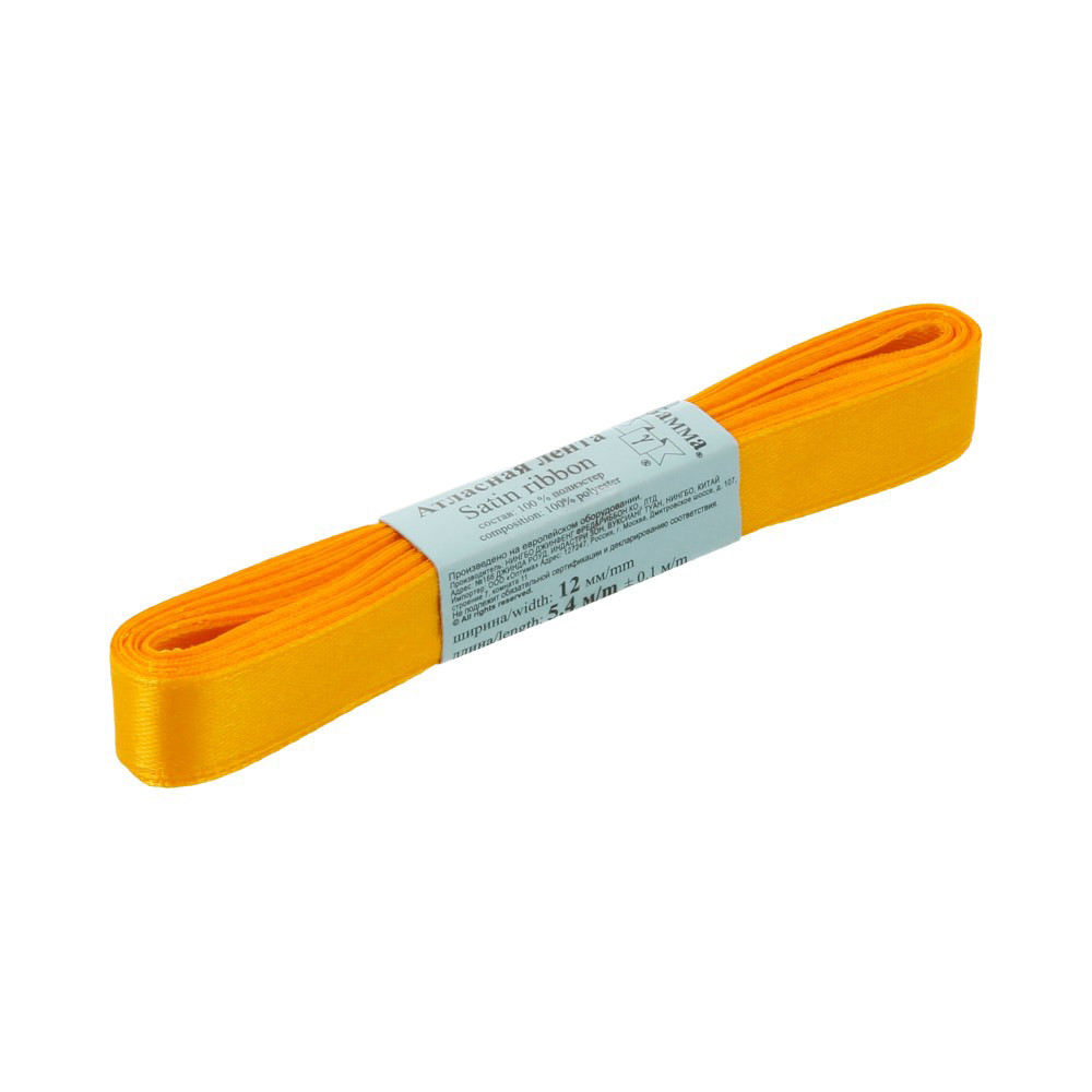 Лента атласная 12 мм ( 1/2 ") "Gamma" ФАСОВКА 5.4 м №021 оранжевый