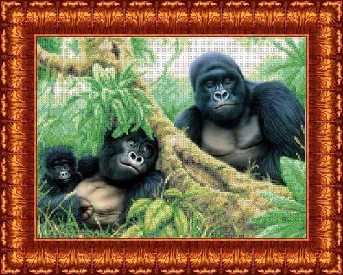 Схема для вышивки бисером КБЖ-3022 Семья горилл